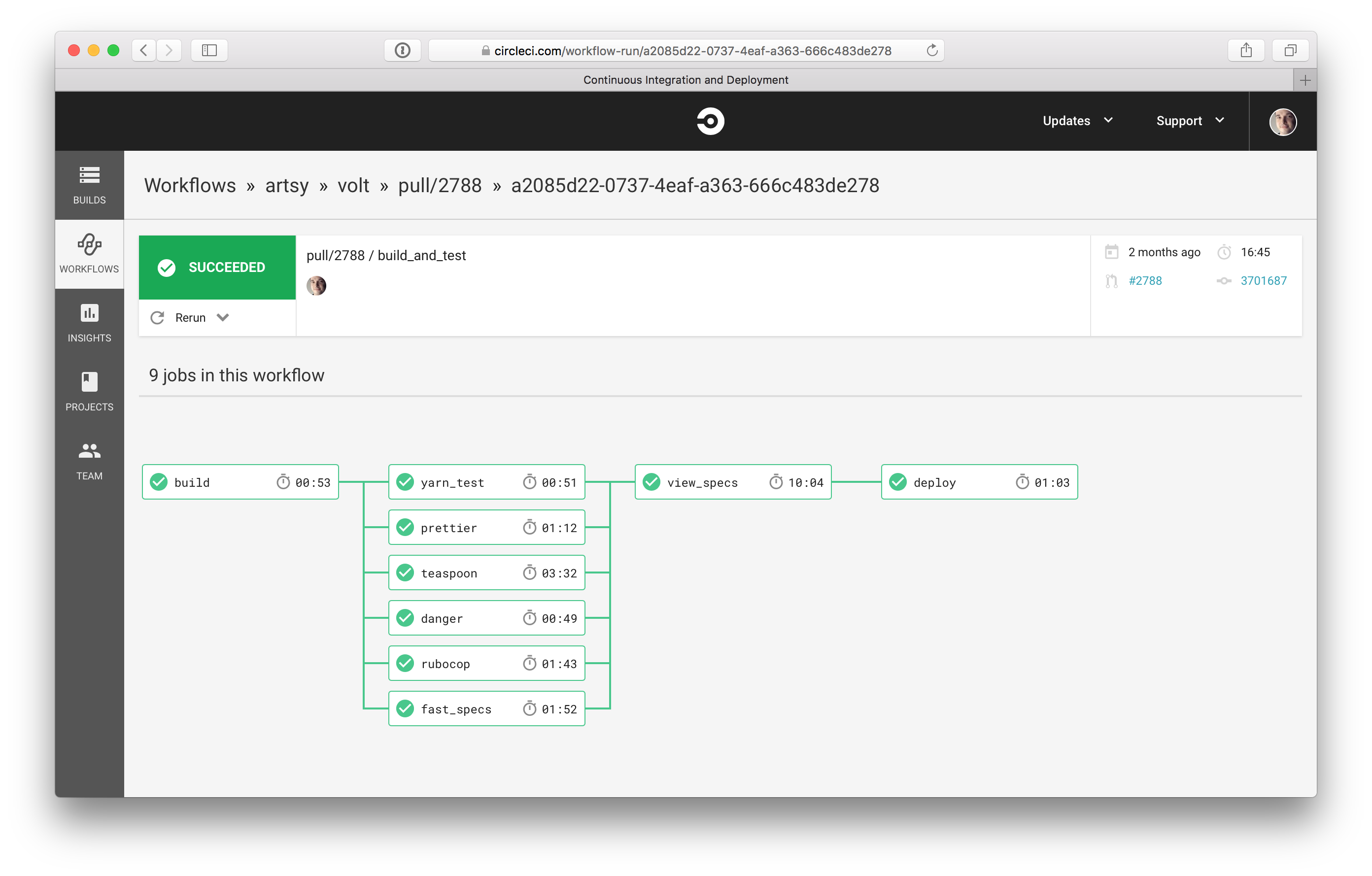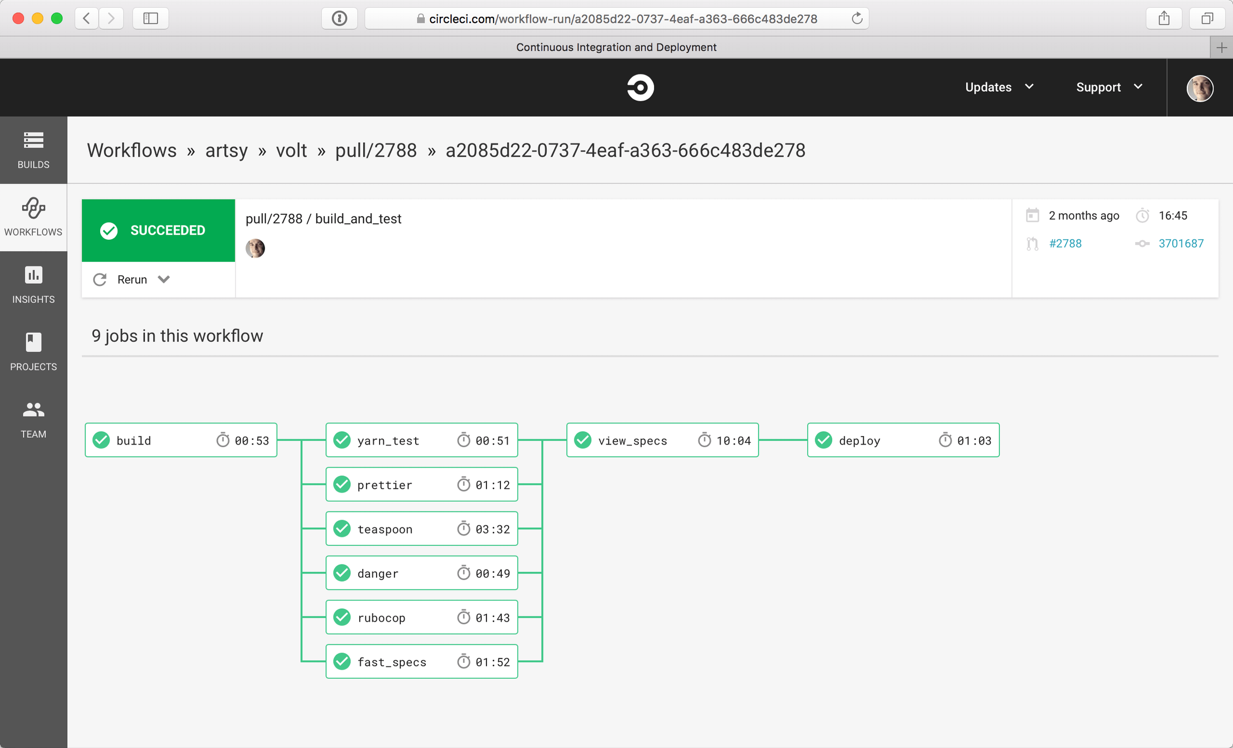 Volt is the internal name for the app that our Partners use to enter information about their artworks and artists into the Artsy platform. It's a Rails app and has a pretty big and slow test suite. Over time, we've ended up with a good number of things that run during CI for this project: