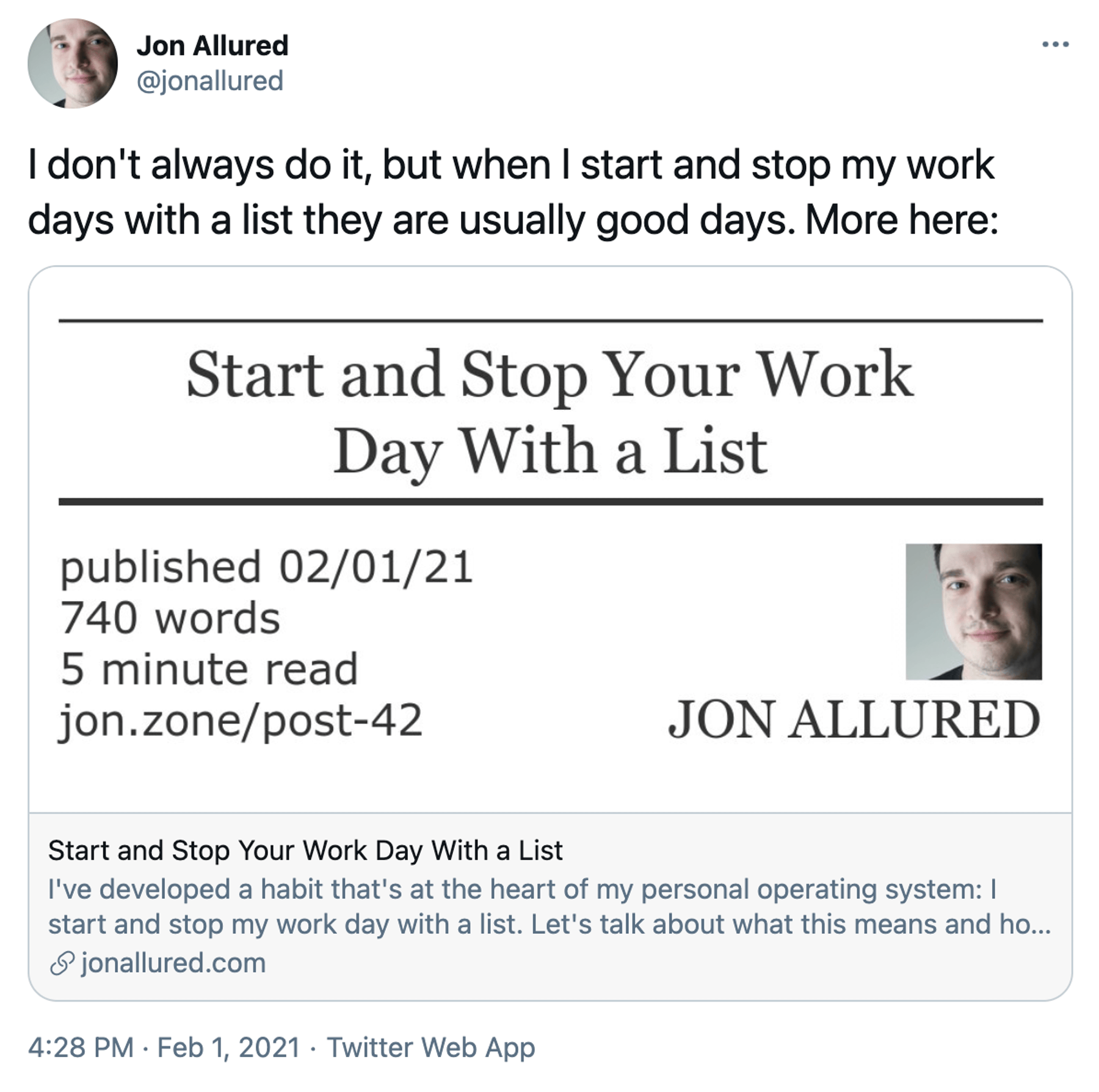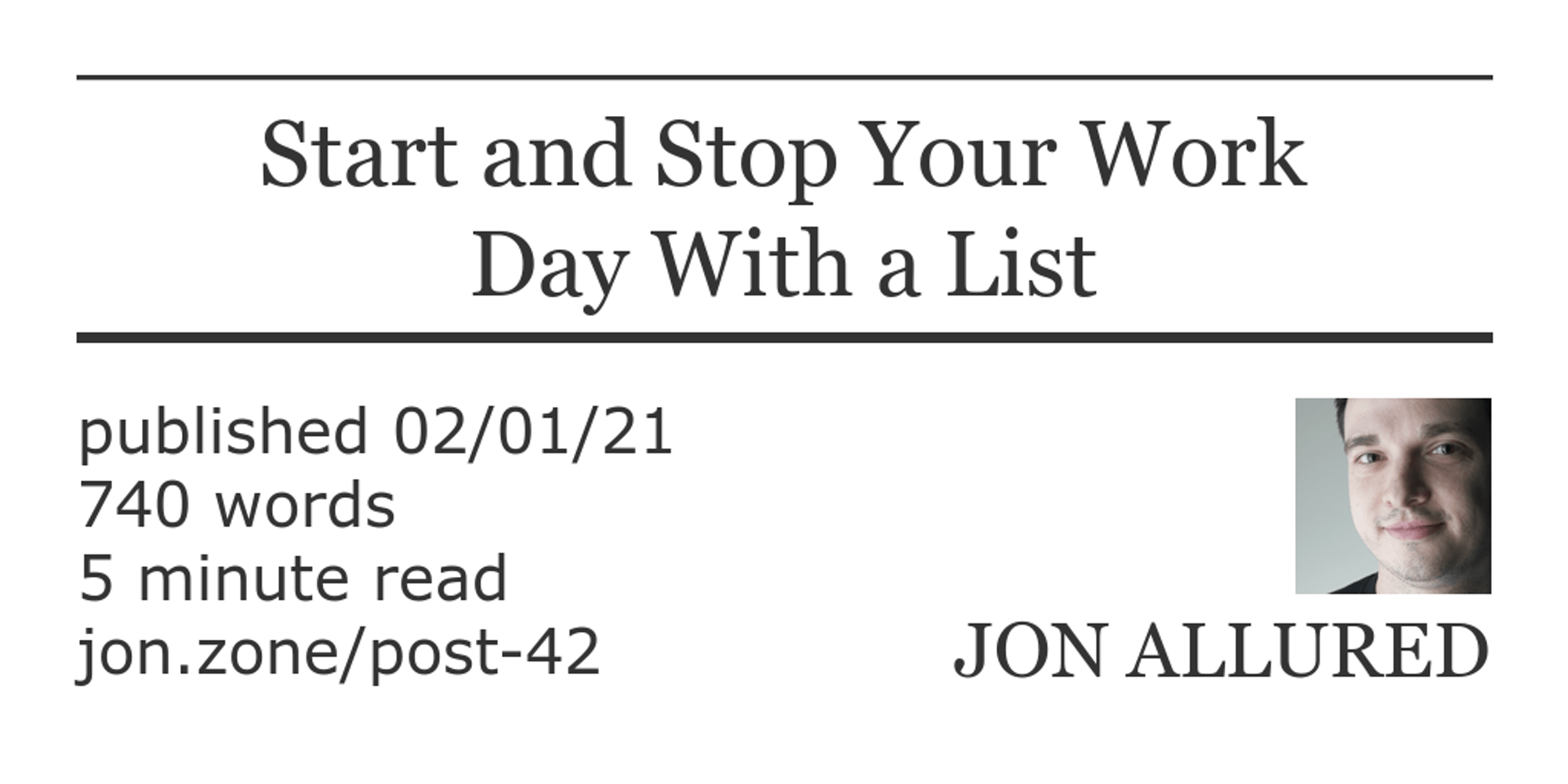 <meta property='og:url' content='/posts/2021/02/01/start-and-stop-your-work-day-with-a-list.html'>