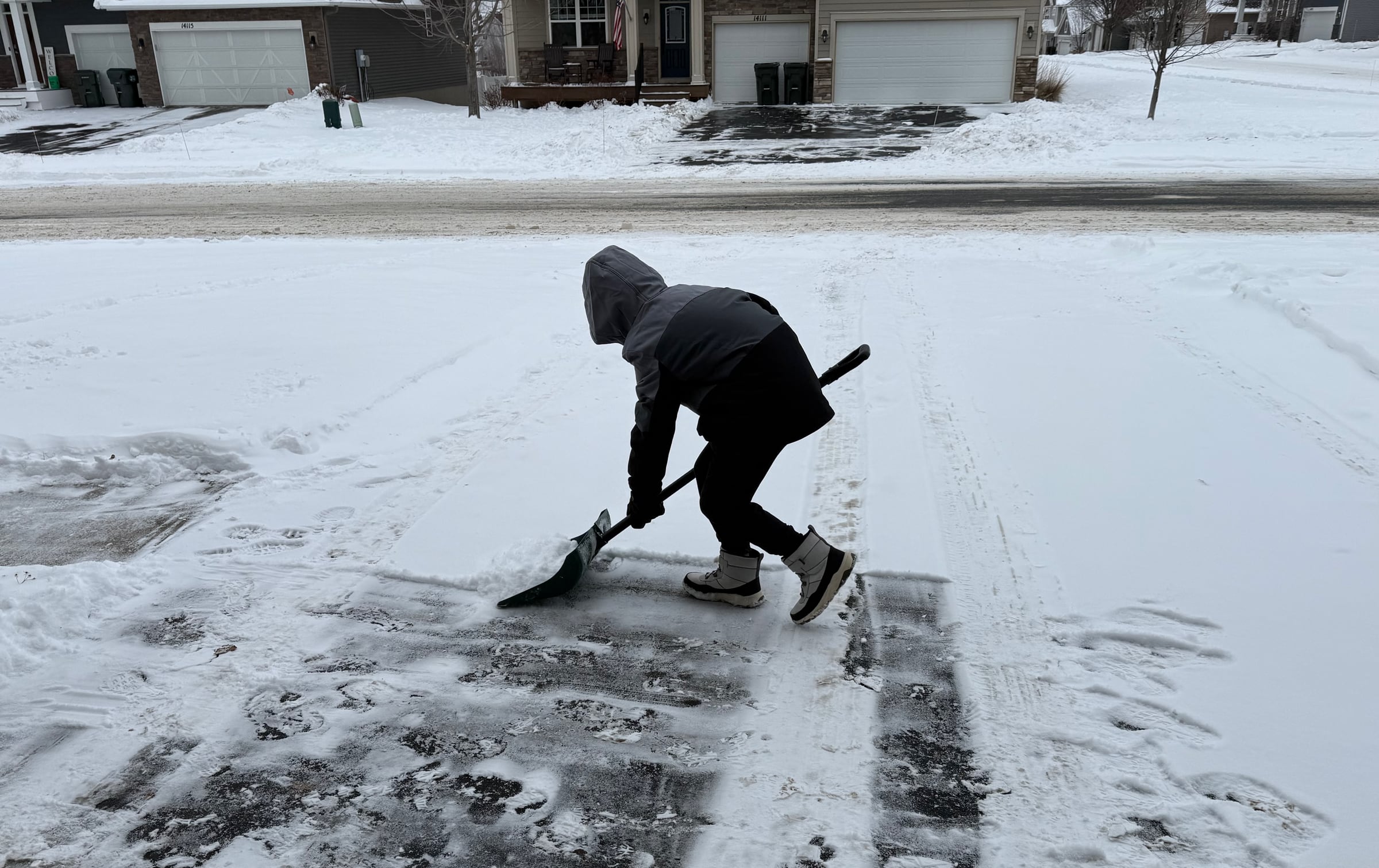 There wasn't a ton of snow on the driveway but there was enough to see how well the kid could do clearing it by himself. He did great! And now I know he can do it so I can't wait to make him do even more work in the future.